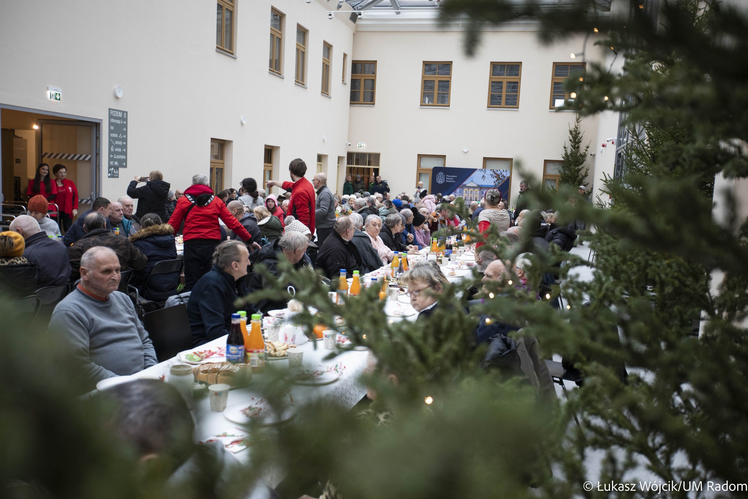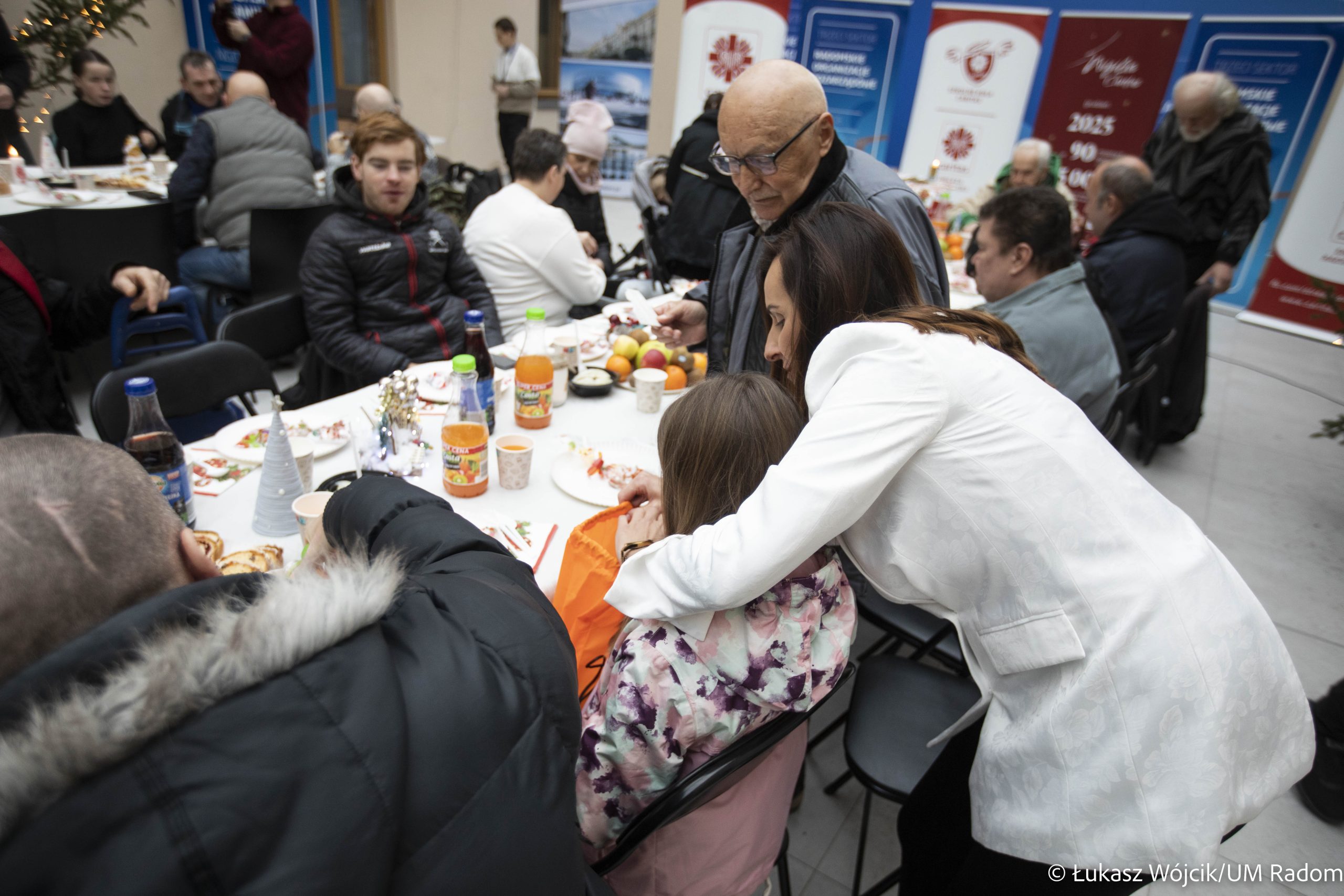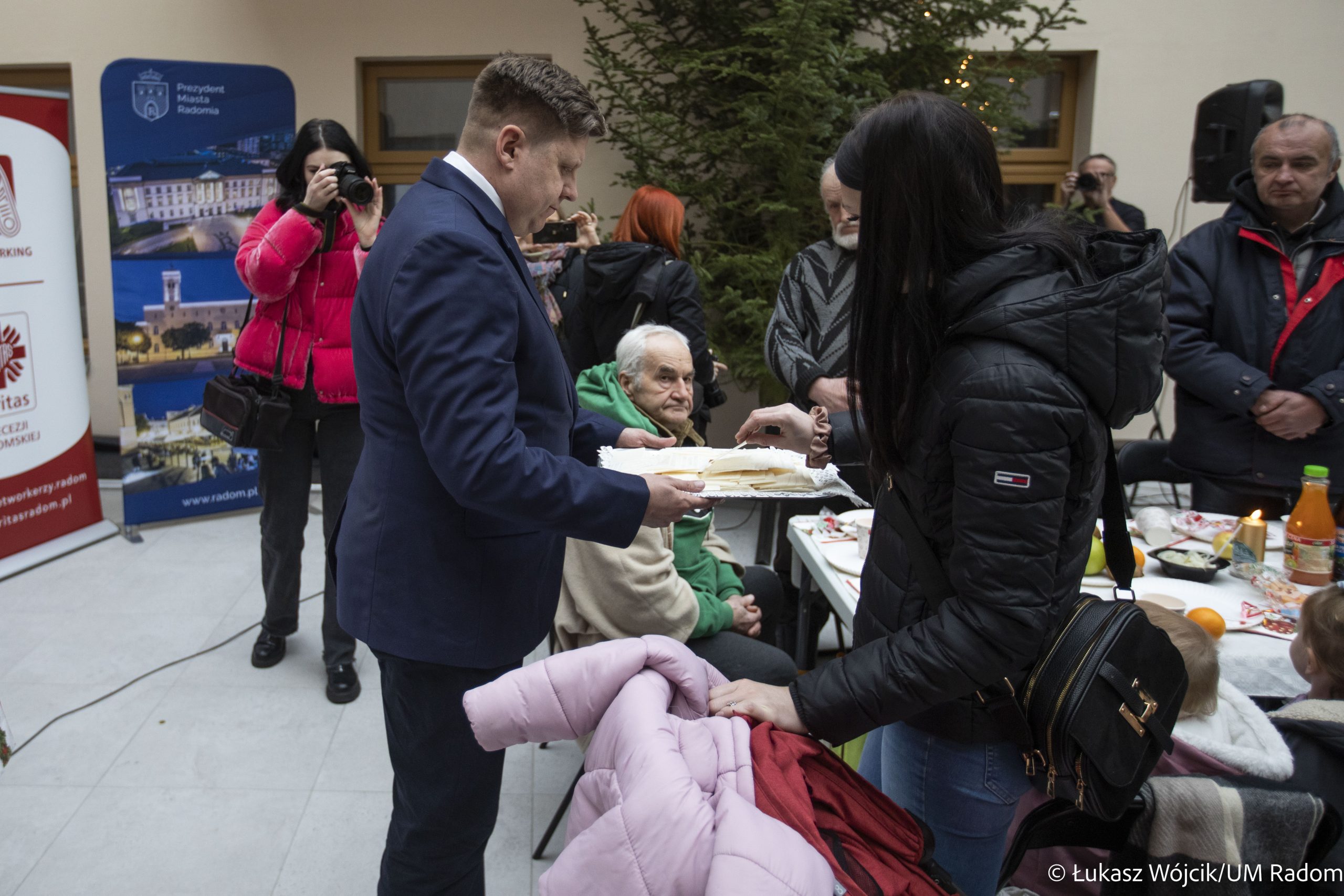 Kilkaset osób samotnych i potrzebujących wzięło udział w świątecznym spotkaniu zorganizowanym przez władze miasta i Caritas Diecezji Radomskiej w Kamienicy Deskurów. Była to okazja do rozmów, połamania się opłatkiem, złożenia sobie życzeń i wspólnego kolędowania. Na stołach znalazło się wiele tradycyjnych, wigilijnych potraw, m.in. karp, bigos, pierogi z kapustą i grzybami i barszcz czerwony. Uczestnicy spotkania otrzymali też paczki żywnościowe.