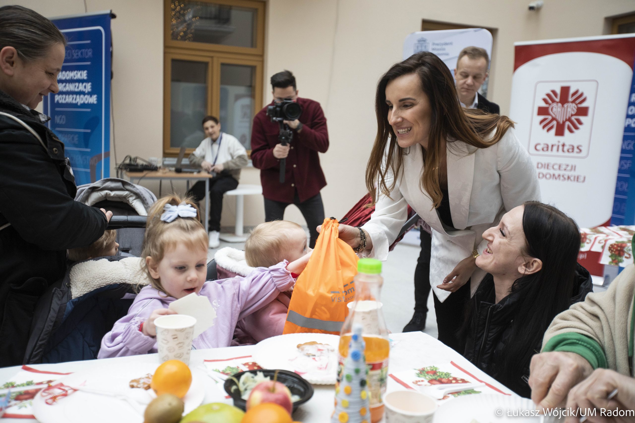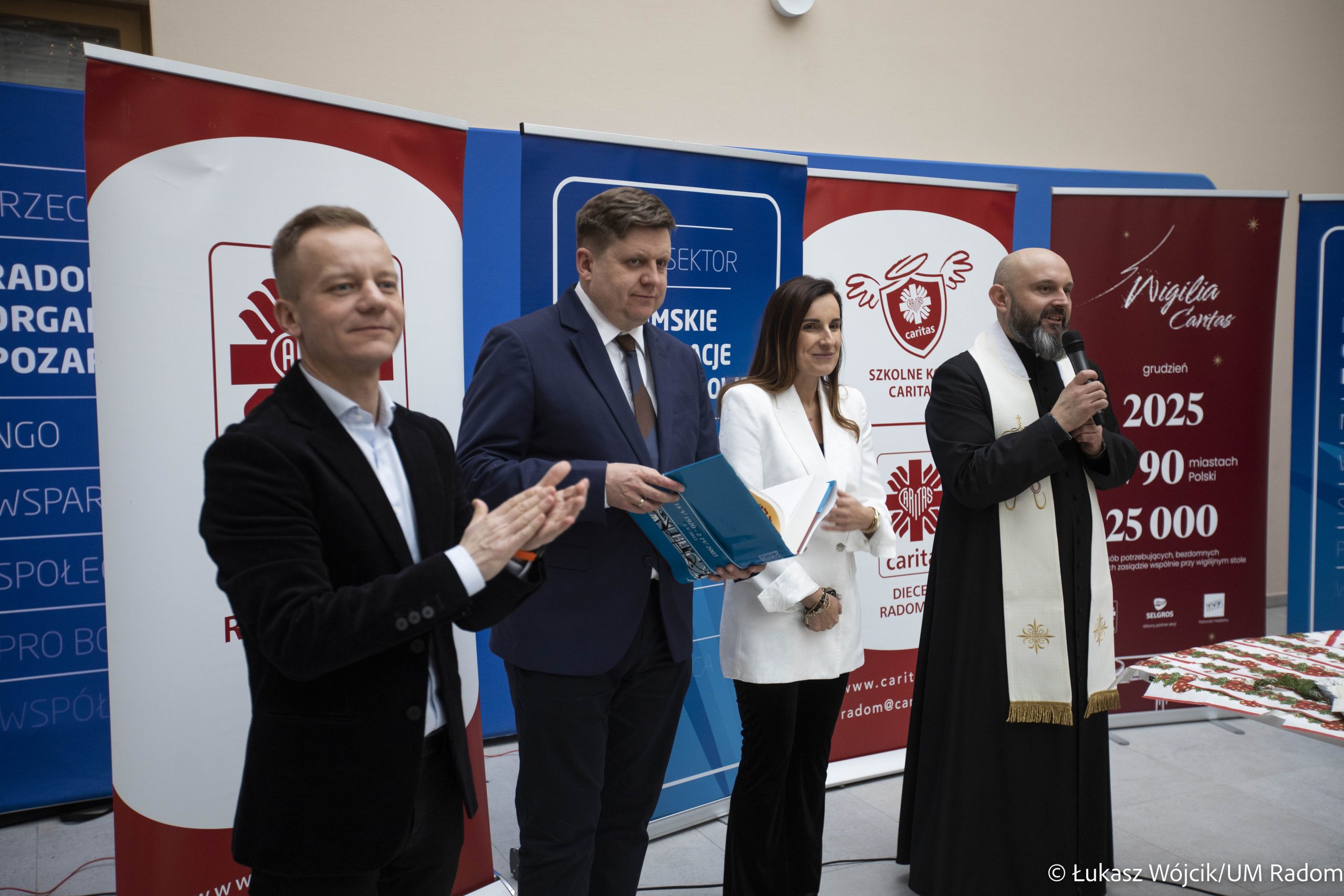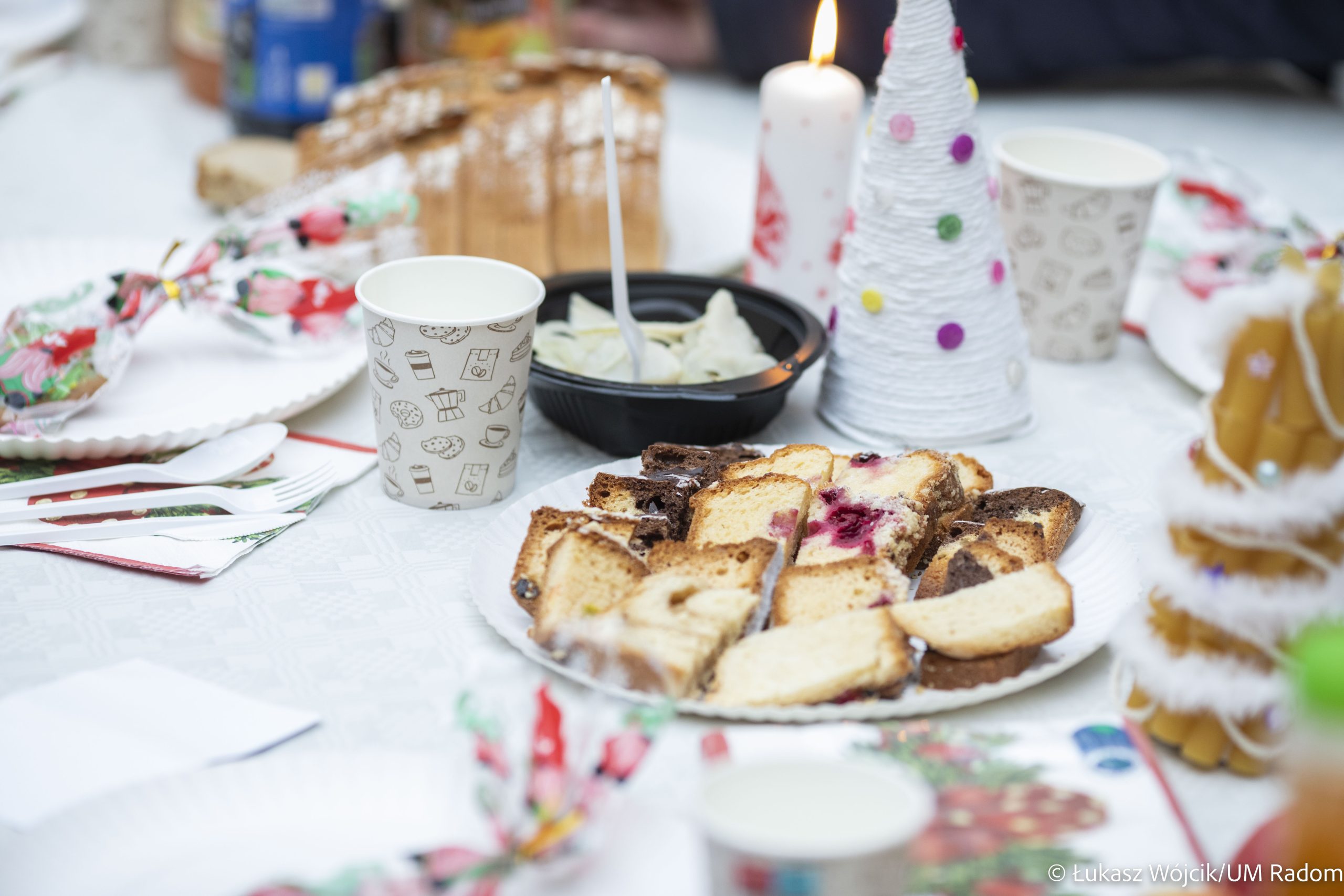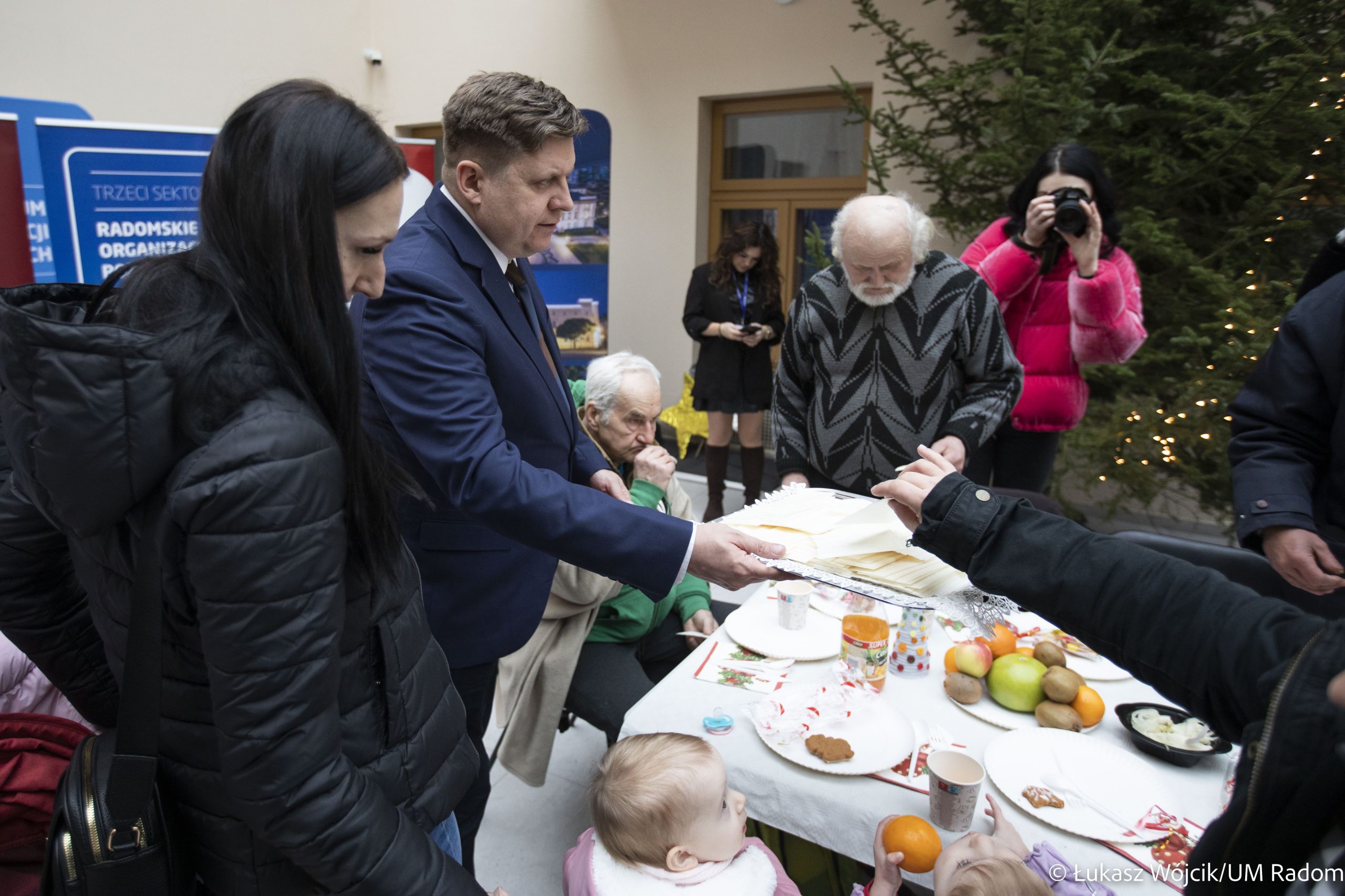 Kilkaset osób samotnych i potrzebujących wzięło udział w świątecznym spotkaniu zorganizowanym przez władze miasta i Caritas Diecezji Radomskiej w Kamienicy Deskurów. Była to okazja do rozmów, połamania się opłatkiem, złożenia sobie życzeń i wspólnego kolędowania. Na stołach znalazło się wiele tradycyjnych, wigilijnych potraw, m.in. karp, bigos, pierogi z kapustą i grzybami i barszcz czerwony. Uczestnicy spotkania otrzymali też paczki żywnościowe.