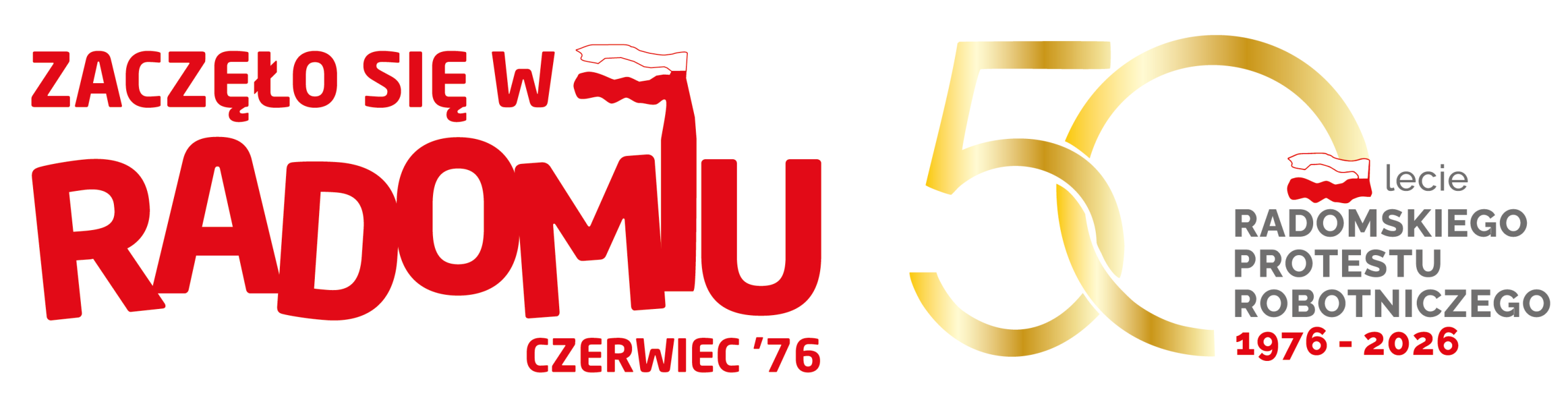 Logotyp „Zaczęło się w Radomiu” jest znakiem zastrzeżonym, który używany może być wyłącznie za zgodą Urzędu Miejskiego w Radomiu. Projekt, w którym użyto logotypu „Zaczęło się w Radomiu” lub „Zaczęło się w Radomiu” w połączeniu z „50 lecie Radomskiego Protestu Robotniczego 1976 – 2026” , należy przesłać do zaopiniowania (przed podjęciem prac produkcyjnych, np. przed drukiem, przed opublikowaniem strony internetowej) na adres: marka@umradom.pl lub przedstawić w Urzędzie Miejskim w Radomiu, ul. Żeromskiego 53 pok. 103.